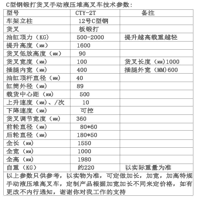 本公司主营产品有半电动堆高车,电动堆高车 , 手动堆高车, 宽腿堆高车,堆高车 电动油桶堆高车,半电动油桶堆高车,平衡式电动油桶堆高车,半电动油桶装卸车,电动油桶倒料车,半电动油桶翻转车,油桶搬运车,油桶翻转到料车,手动液压搬运车,手动叉车,搬运车,托盘搬运车,手动液压叉车,液压泵,油泵,千斤顶,油缸,液压动力单元等液压搬运设备,欢迎你的选购。