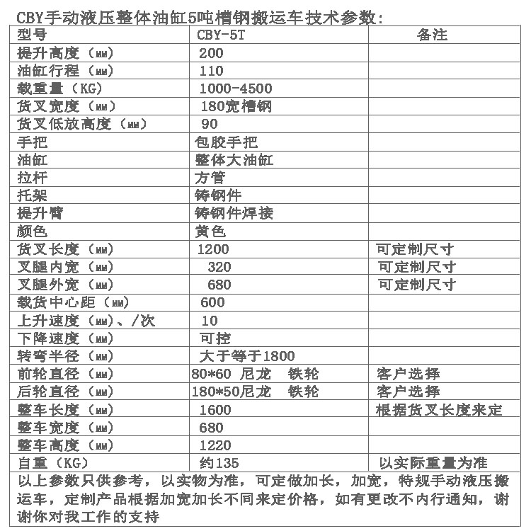 5吨手动液压搬运车680宽180槽钢货叉1.2米长手推叉车 大吨位地牛