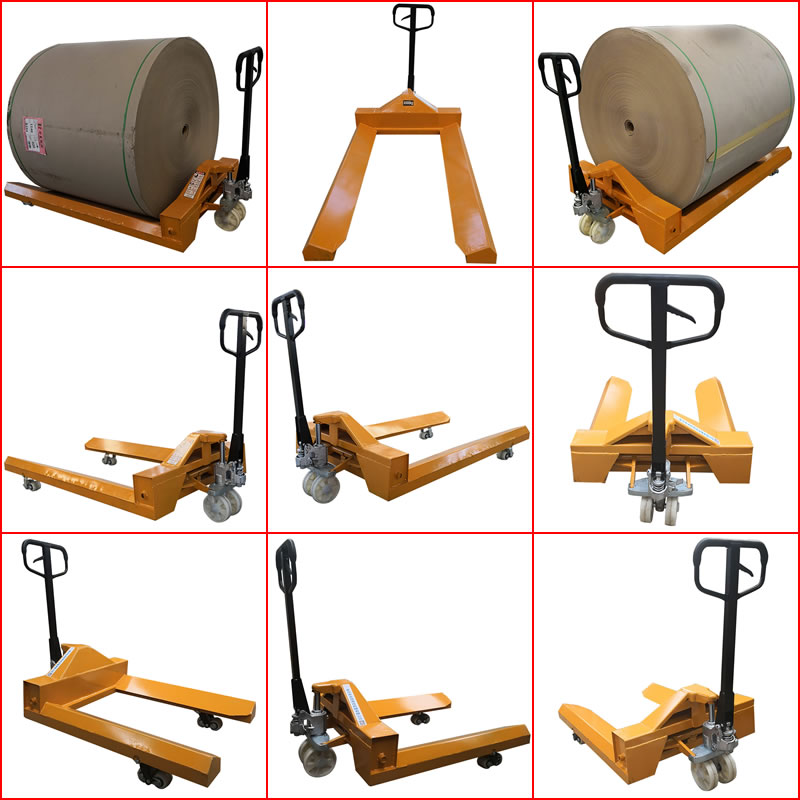 定制2吨加宽纸卷卷筒纸手动液压搬运叉车 盘直径800到1.2米油压车